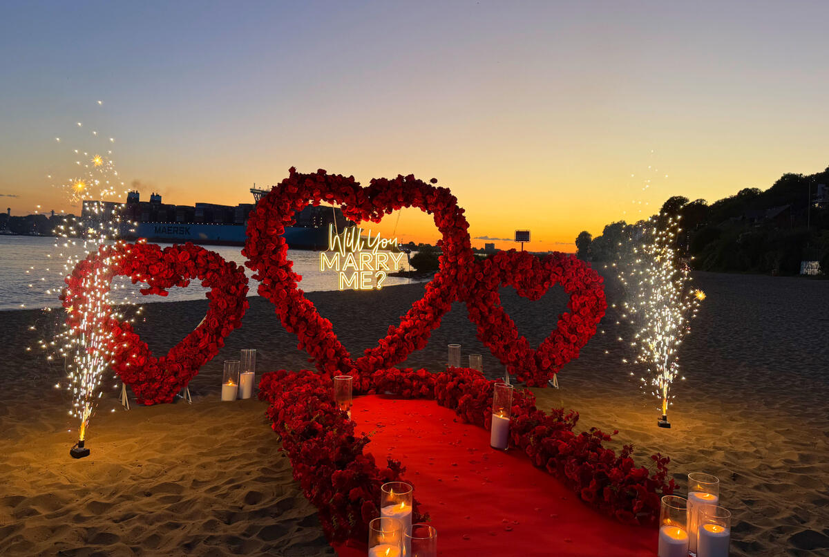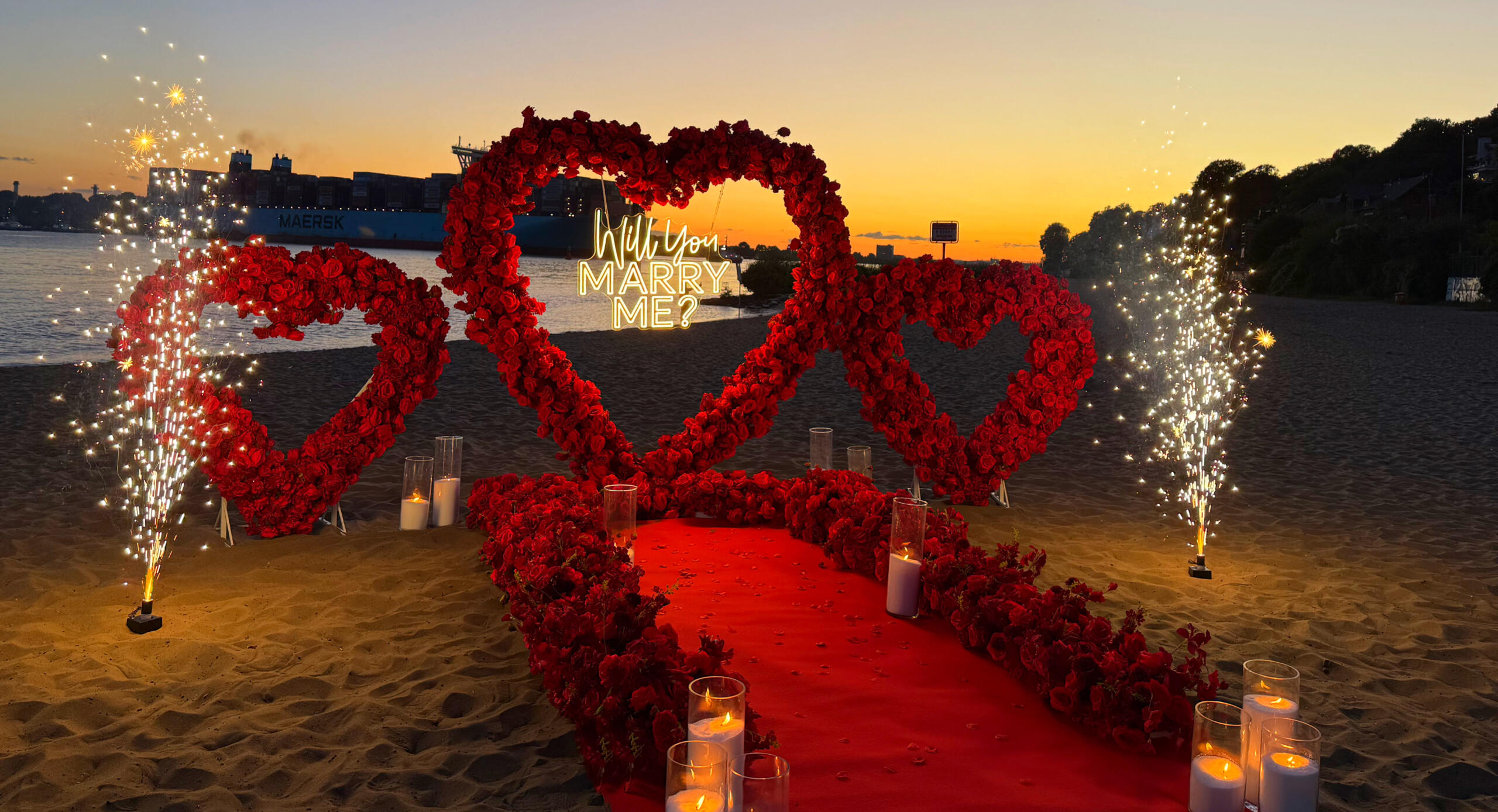 Wir gestalten individuelle Anträge an besonderen Orten in Hamburg – z. B. Rooftop, Strand, Hotel oder privat zu Hause.