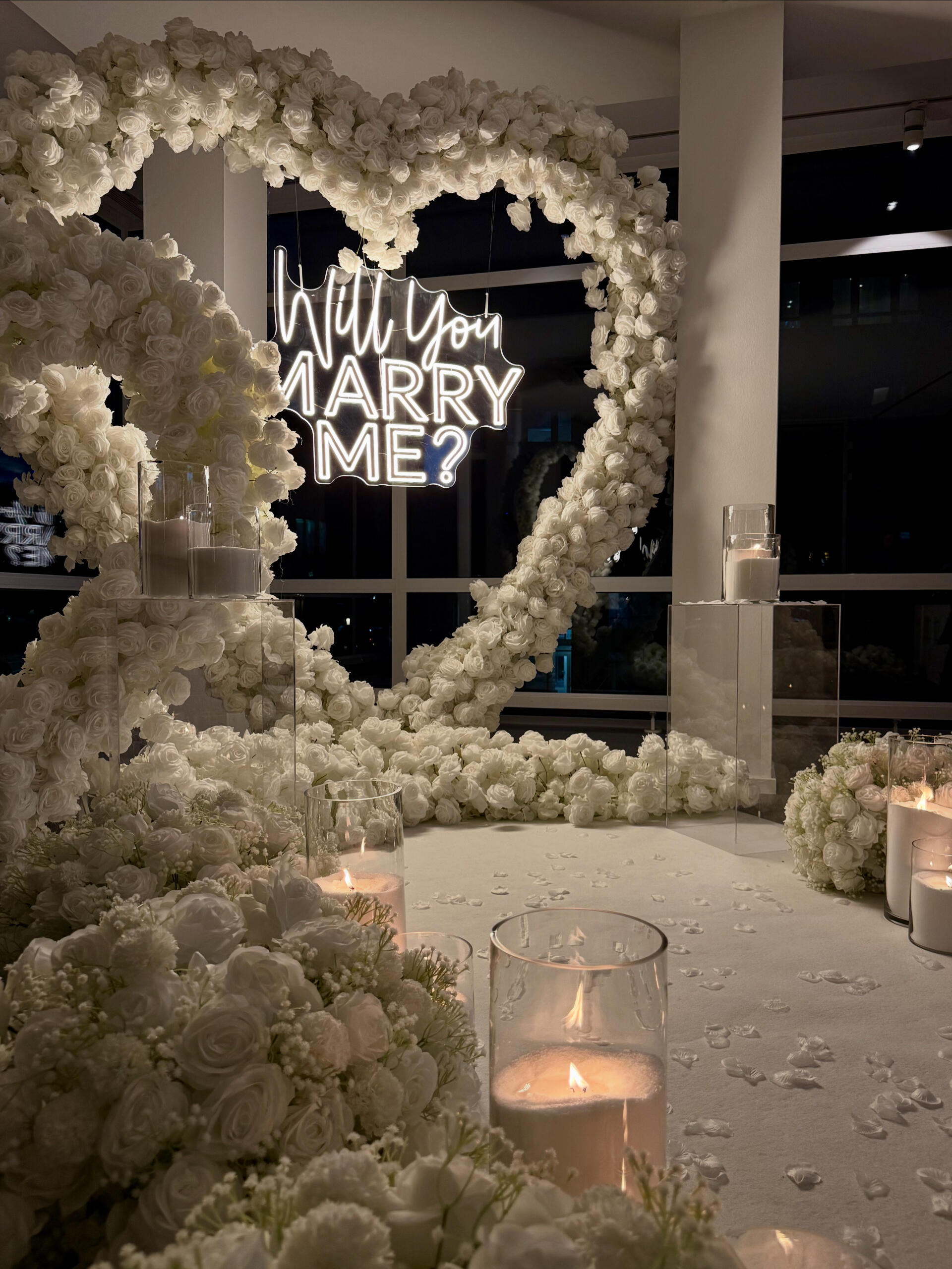 Ein ganz privater Antrag – bei euch zuhause oder in einer gewünschten Location. Wir bringen die Magie, ihr den Ort.